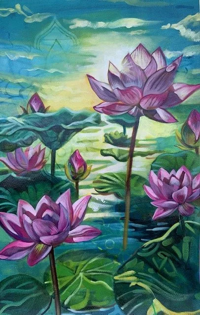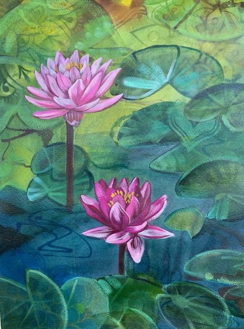 All Paintings here are Mixed Media Oil Paintings on Archival Watercolour Paper except Dewdrop Lotus